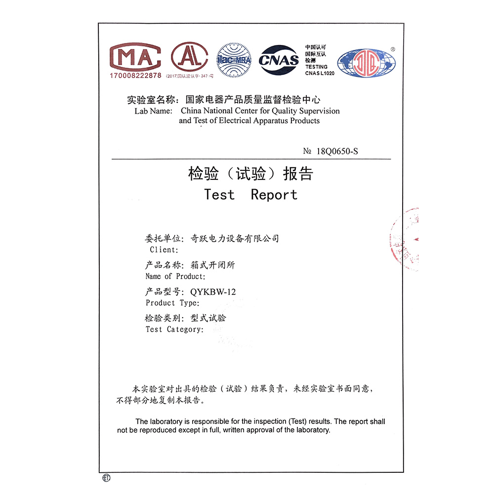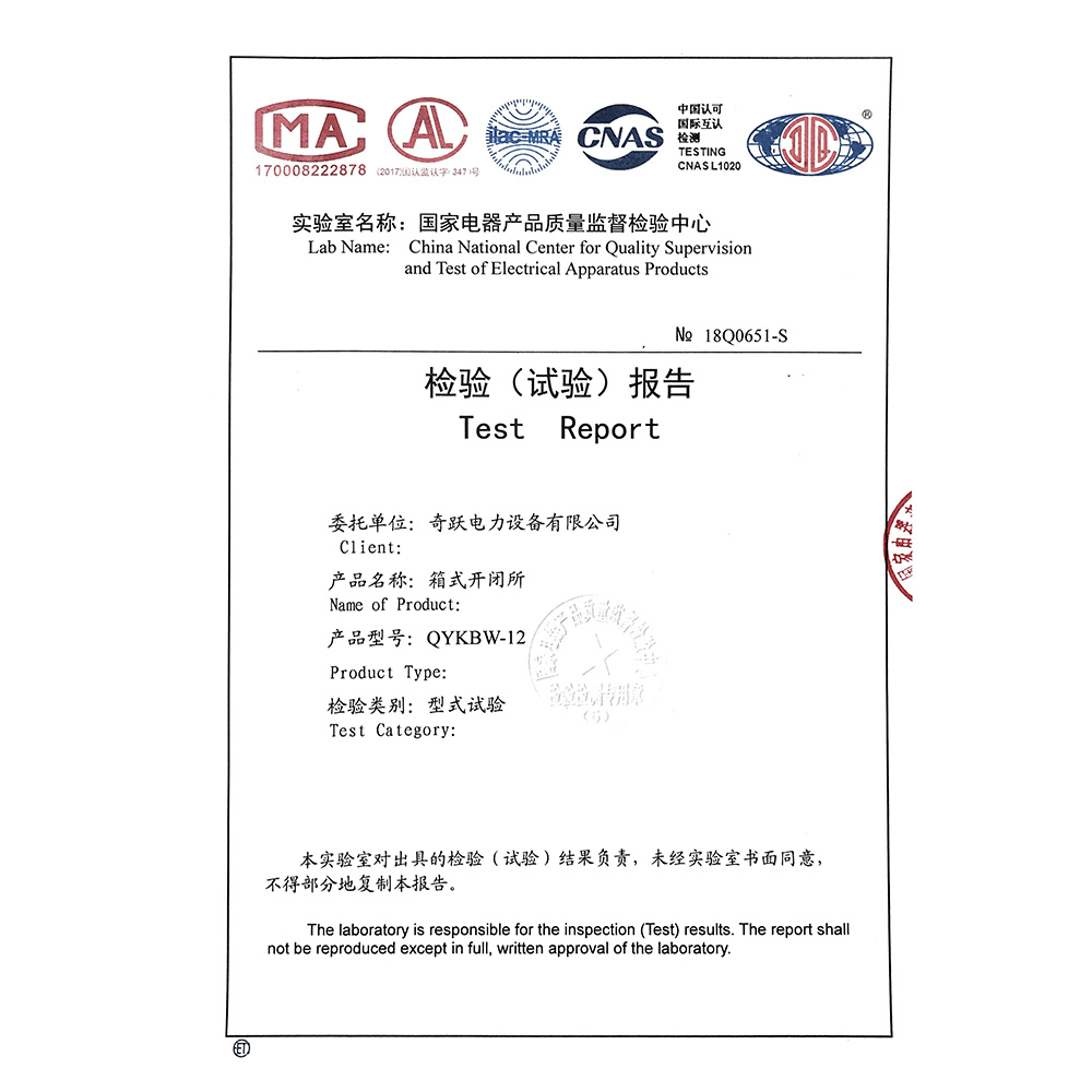 QYKBW-12箱式開閉所 檢驗報告