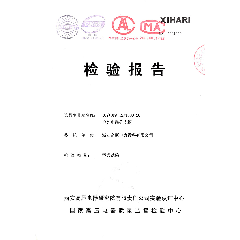 (QY)DFW-12/T630-20戶外電纜分支箱 檢驗報告