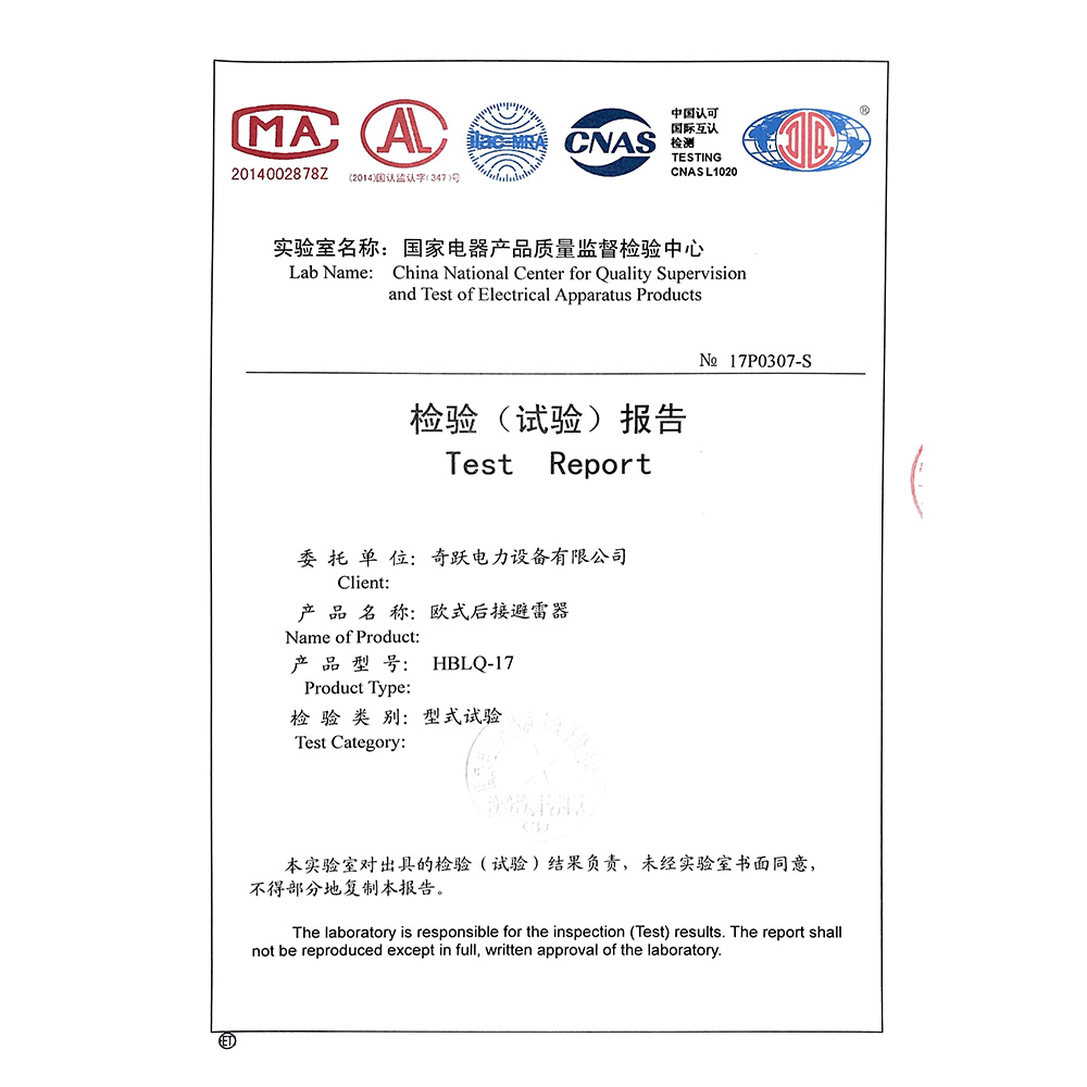 HBLQ-17歐式后接避雷器 檢驗報告
