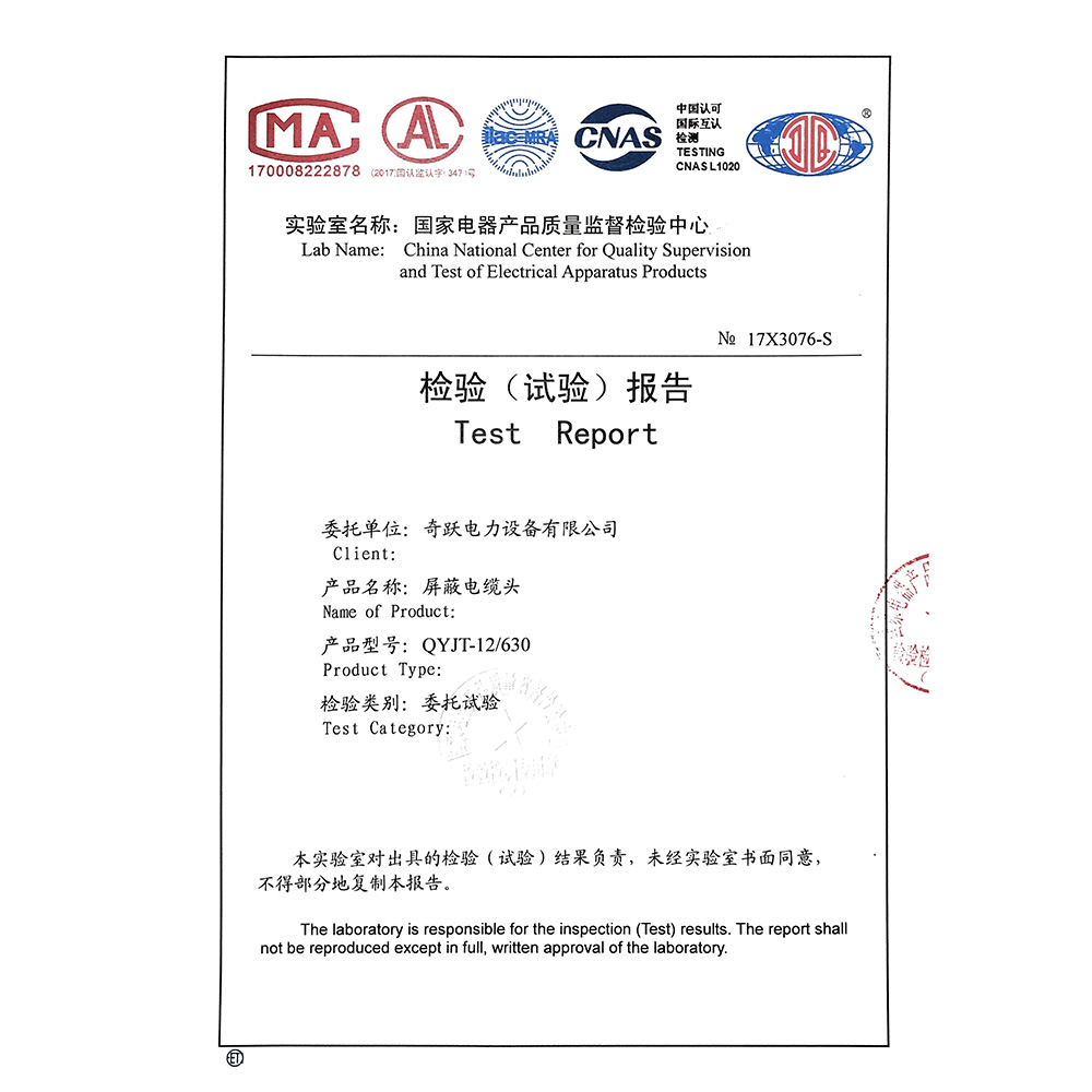 QYJT-12/630屏蔽電纜頭 檢驗報告