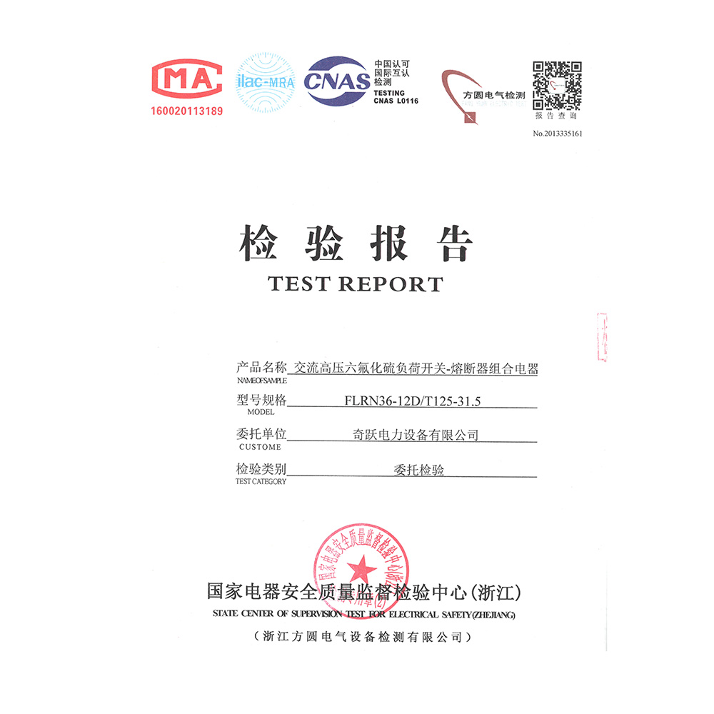 FLRN36-12D/T125-31.5交流高壓六氟化硫負荷開關-熔斷器組合電器 檢驗報告