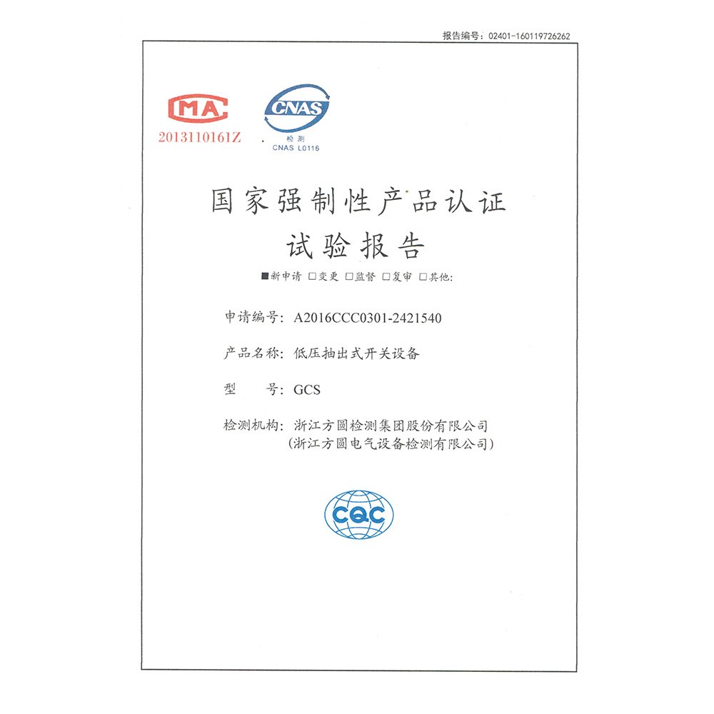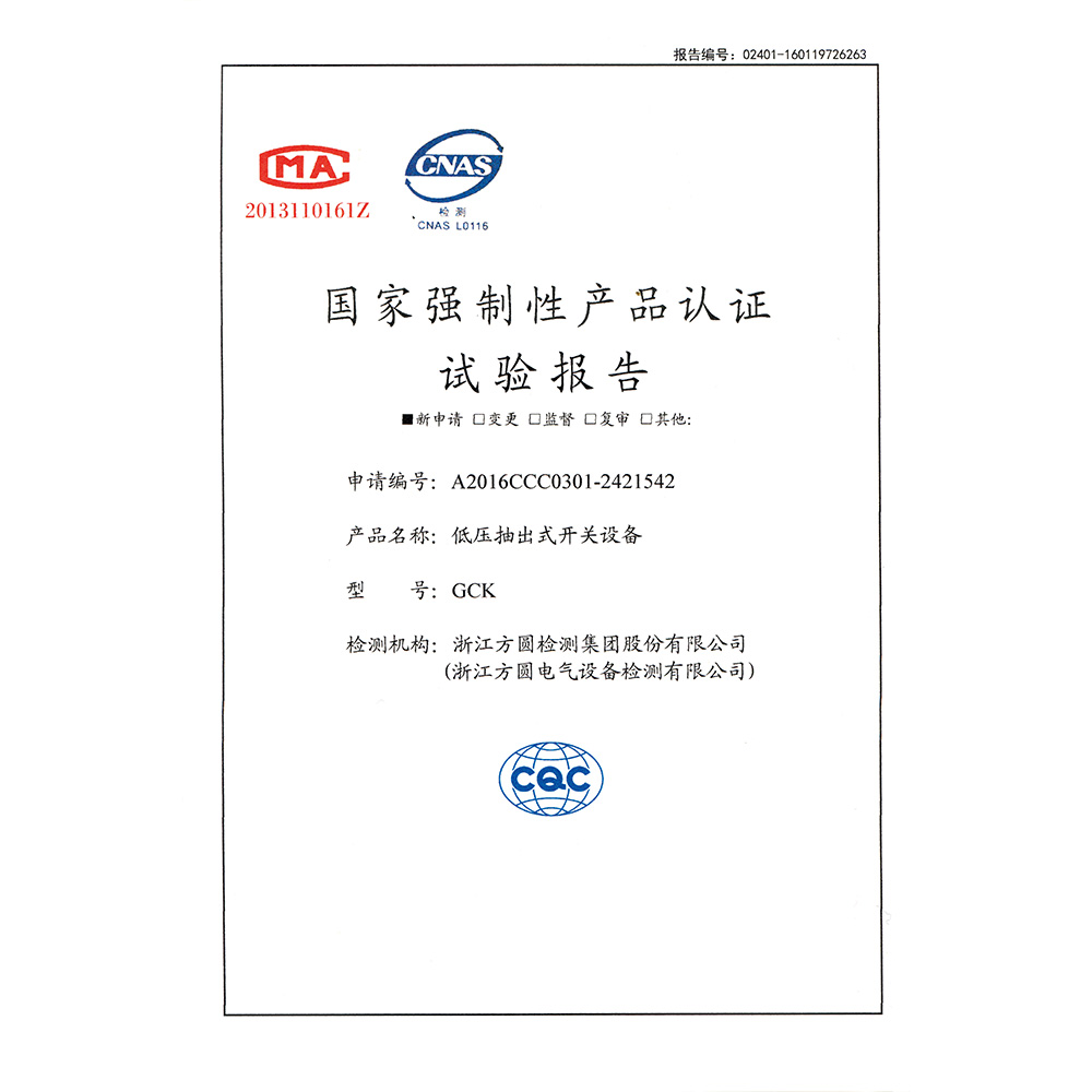 GCK低壓抽出式開關設備 檢驗報告