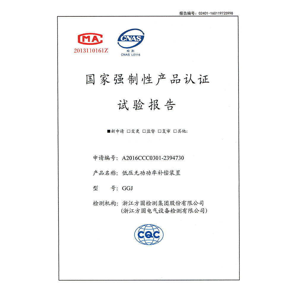 GGJ低壓無功功率補償裝置 檢驗報告