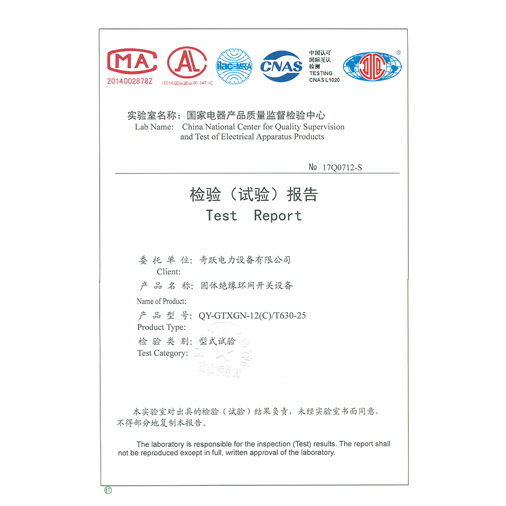 QY-GTXGN-12(V)/T630-25固體絕緣環網開關設備 檢驗報告