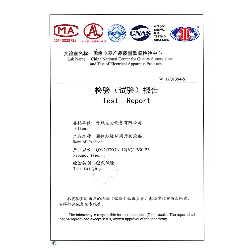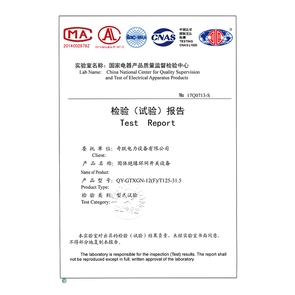 QY-GTXGN-12(F)/T125-31.5固體絕緣環網開關設備 檢驗報告