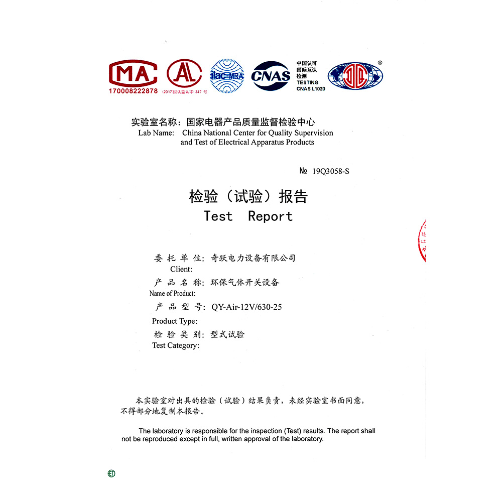 QY-Air-12V/630-25環保氣體開關設備 檢驗報告