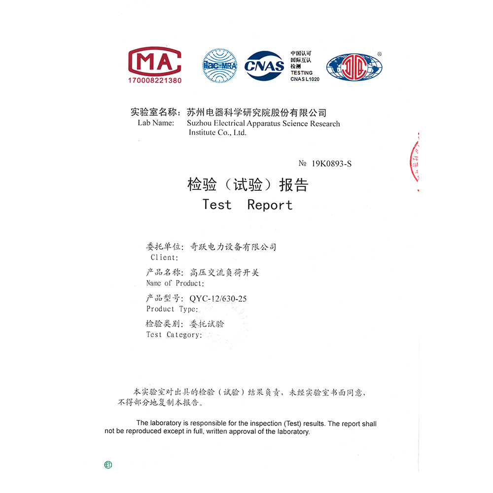 QYC-12/630-25高壓交流負荷開關 檢驗報告