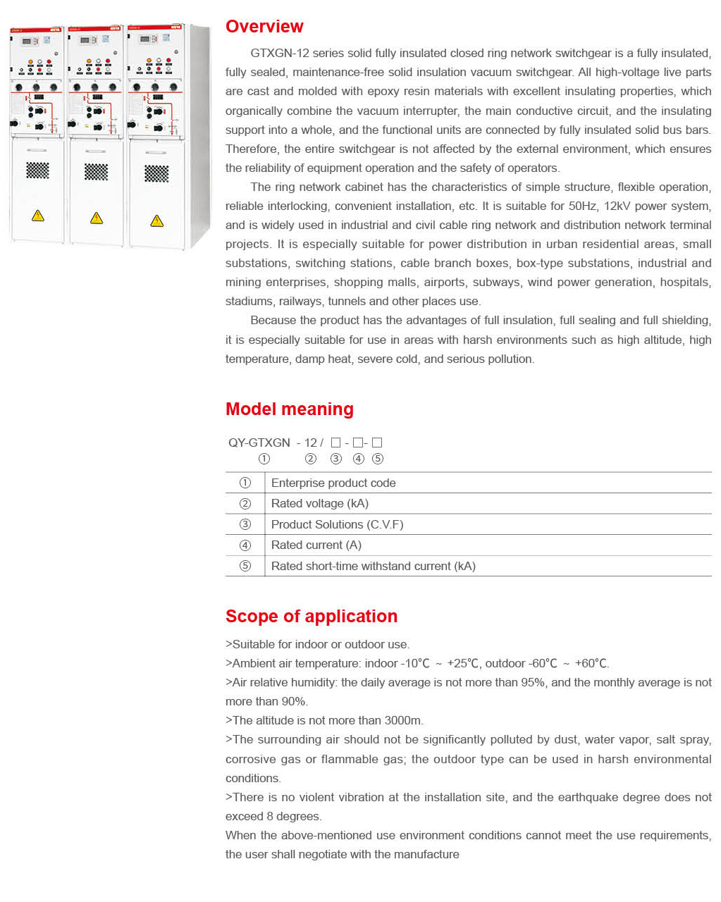 QY-GTXGN-12 Solid fully insulated closed ring network switchgear