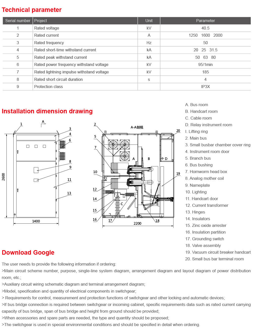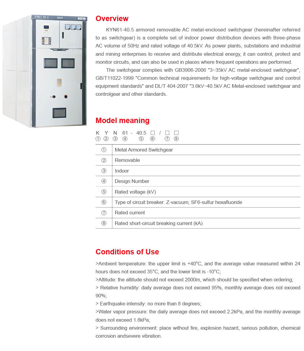 KYN61-40.5 Armored removable AC metal-enclosed switchgear