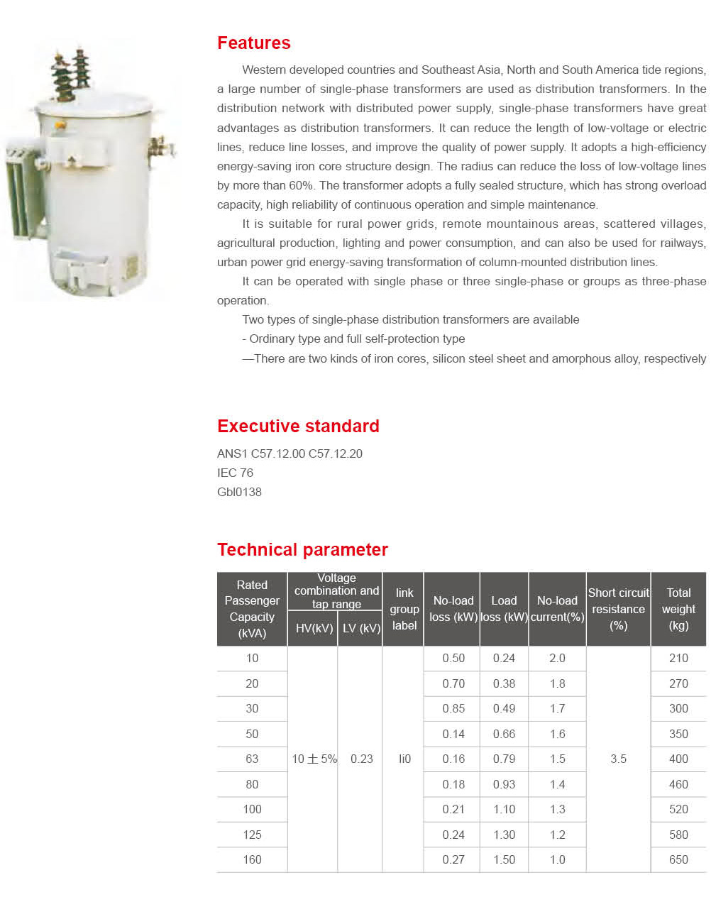 Single-phase oil-immersed transformer